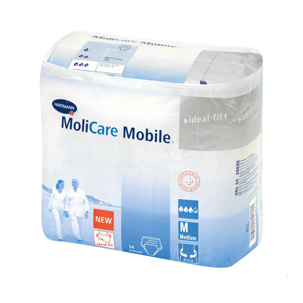 Le slip absorbant anatomique Hartmann Molicare Mobile est conçu pour les hommes et les femmes mobiles ayant des fuites urinaires et fécales sévères.