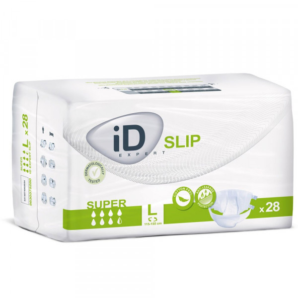 Particulièrement adapté aux personnes à mobilité réduite, le change complet de nuit Ontex-ID Expert Slip Super est conçu pour les hommes et les femmes ayant des fuites urinaires fortes. Il peut également s´utiliser de jour.