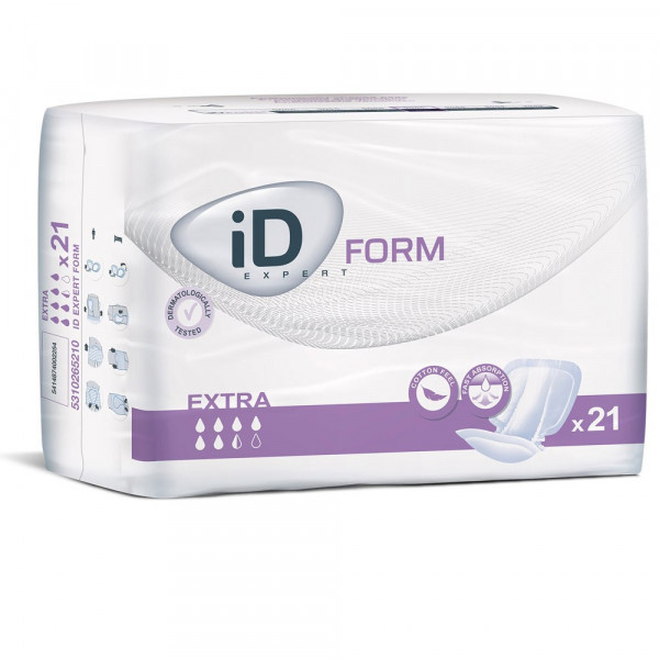 Conçue pour les personnes mobiles ou alitées, la protection anatomique Ontex-ID Expert Form s´utilise avec un slip de fixation qui lui assure un bon maintien et renforce ainsi son étanchéité.